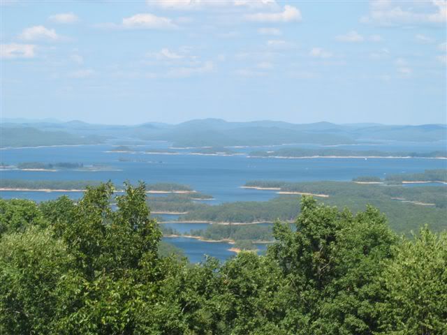 There's lots of water in Arkansas. Even during a drought. Those little dark specks out there? Sailboats. Those sandy looking beachs? Rocks - shale, quartz. . . But altogether a very nice Vista. This is from the top of Hickory Nut Mountain, overlooking Lake Ouachita. There's geocaches out there. Heck, I think there's one somewhere behind where we stood taking this photo. My Aunt Donna took it, by the way.